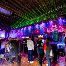 Lively atmosphere with bumping music and loads of retro games. I loved having a drink and enjoying the art painted on the walls. I was there on a Friday and there was a live DJ. The drinks were reasonably priced and they even had a cheap beer special. The games cost about one or two tokens. I think it shakes out to be about 25 cents per token. I used $5 and was able to play as many as I wanted. I especially loved all the pinball machines. I would definitely come back for some late night fun!